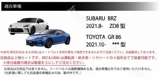 ※初代BRZ(ZC6)&86(ZN6)はシートベルト形状が異なり使用できませんのでご注意ください。初代BRZ&86用は別途販売しています。