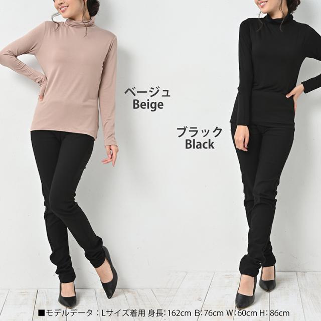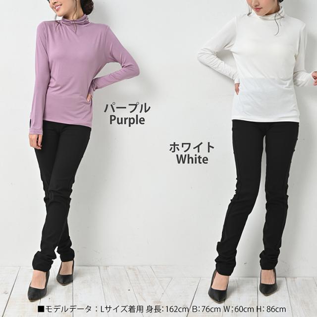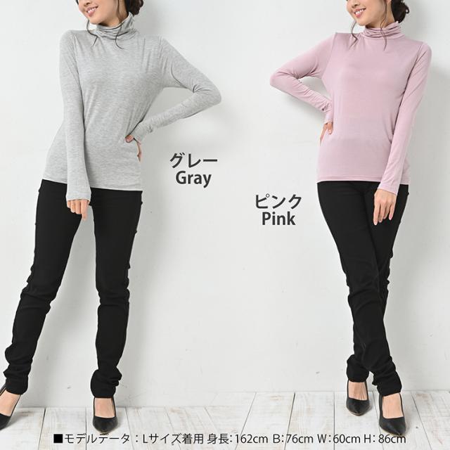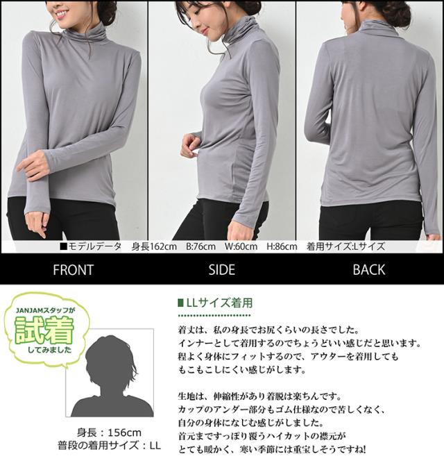 大きいサイズ レディース カップ付きカットソー 長袖 タートルネック 無地 カラバリ豊富 インナー 薄手