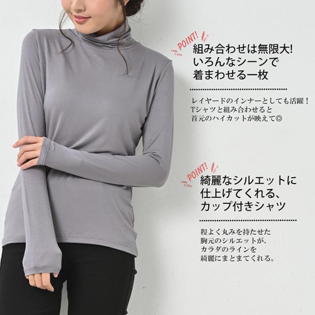 肌寒い季節の救世主に!カップ付きハイネック長袖カットソー。