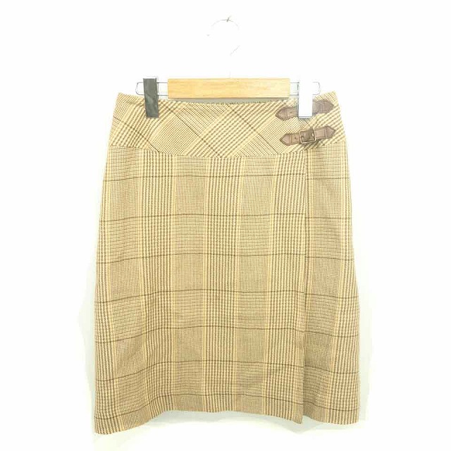 【中古】ロペ ROPE スカート タイト ラップ 巻き ひざ丈 チェック ベルト装飾 ウール 60-86 ベージュ ブラウン 茶