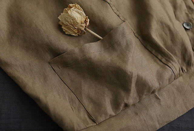 素朴なコットンリネンの生地がレトロ感を感じさせるノーカラージャケット♪