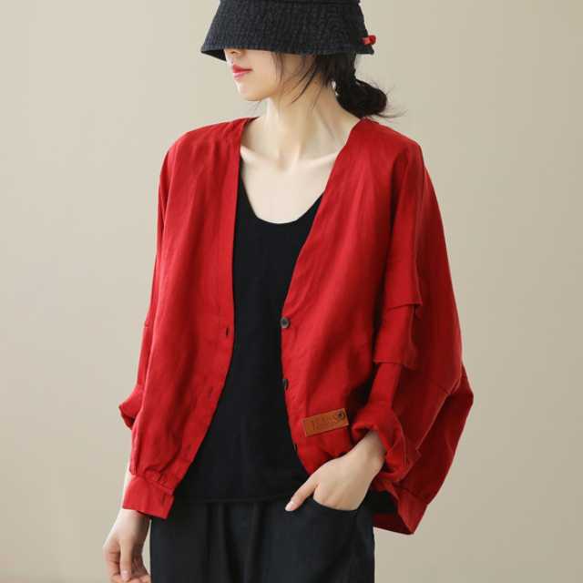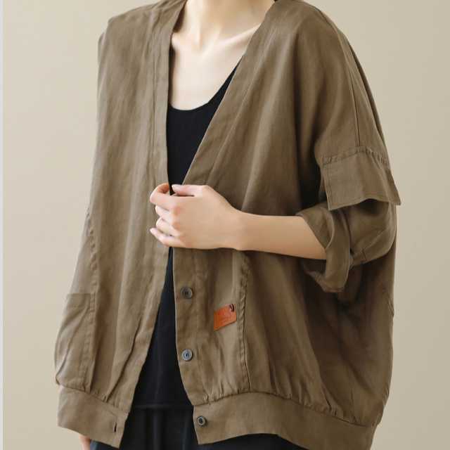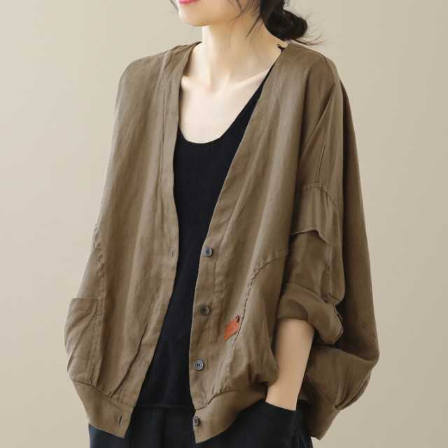 ジャケット ノーカラージャケット アウター リネン レトロカジュアル レトロ ヴィンテージ ノーカラー ライトアウター レディース ナチュラル カジュアル 大きいサイズ 全2色 キレセク