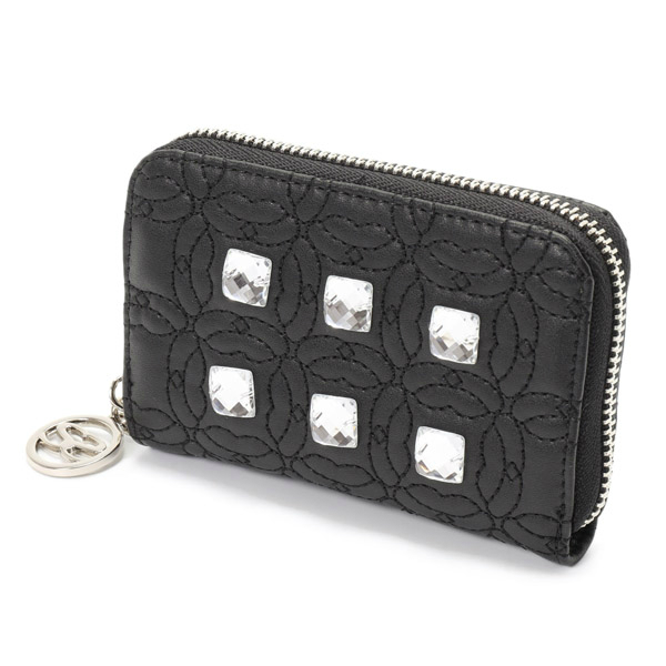 ■ 合皮ギルディンク生地にズグエア型のヒシューをあしらった財布です