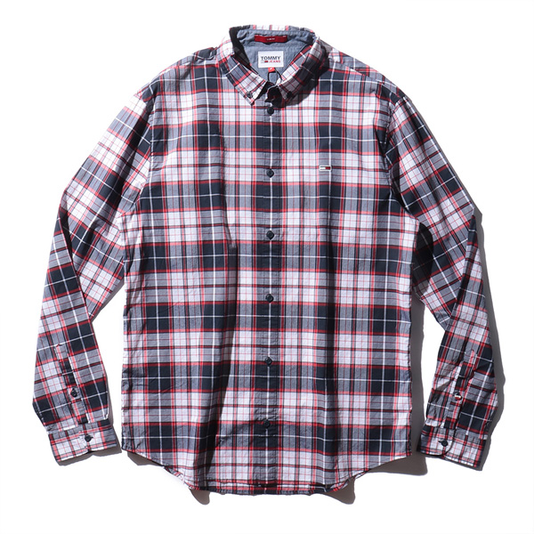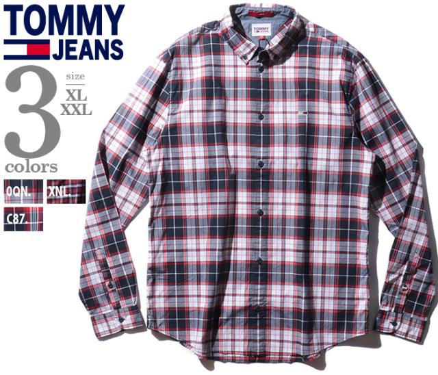 大きいサイズ メンズ TOMMY JEANS トミージーンズ チェック柄 長袖 ボタンダウン シャツ USA直輸入 dm0dm10983