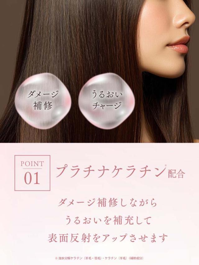 ●「プラチナケラチン(*2)」が上質のうるおい補修でプラチナのように輝くツヤ髪へ仕上げます。