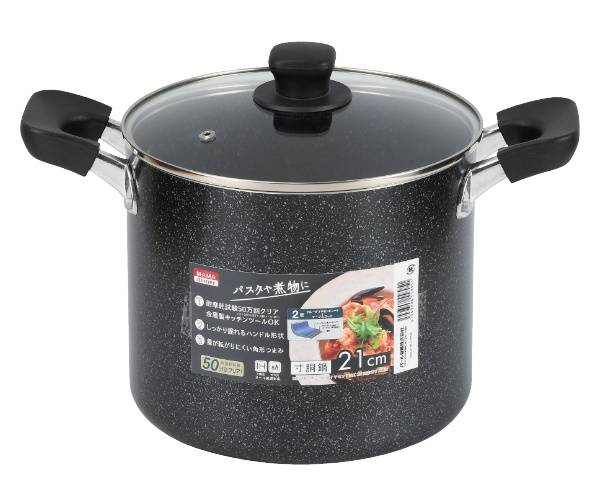 寸胴鍋 21cm IH対応 ママディナー ガラス蓋付き ( ih ガス火 対応 両手鍋 両手なべ 21 センチ ブラック 調理鍋 寸胴 鍋 なべ 蓋付き アルミ鍋 アルミ 料理 調理 )