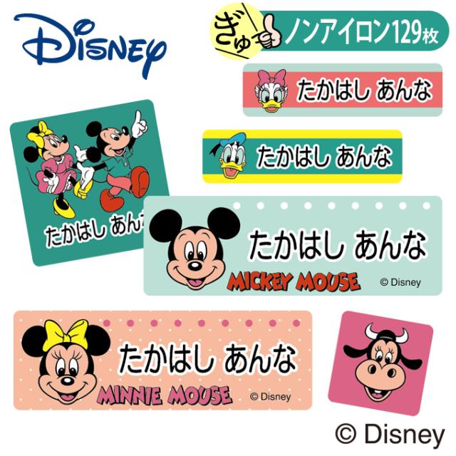 入園 入学 キャラクター ノンアイロン タグ用 ローマ字 ひらがな 幼稚園 保育園 子供 ネームシール 布 おなまえシール Disney ミッキー ミニー ドナルド デイジー チップ デール プルート