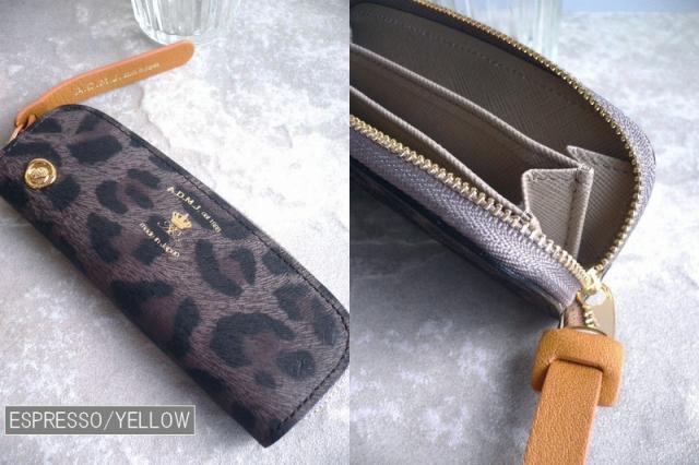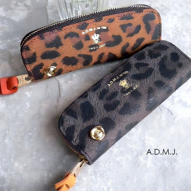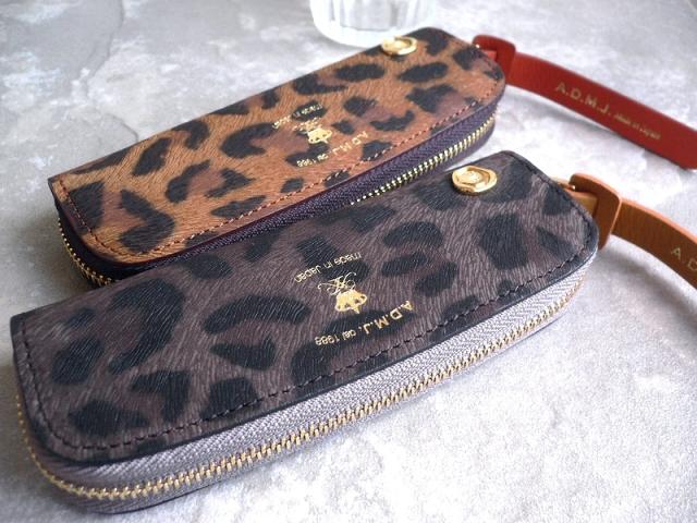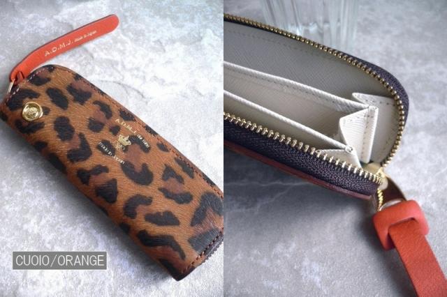 クーポン対象外 ADMJ コインケース 財布 牛革 子牛革 ヘアカーフ型押し レオパード 豹柄 ヌバック コインケース 22WS06002 イエロー/オレンジ