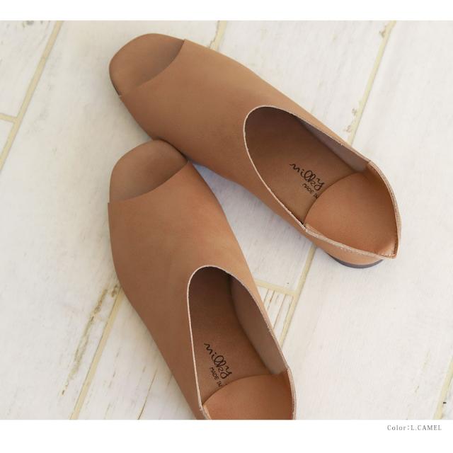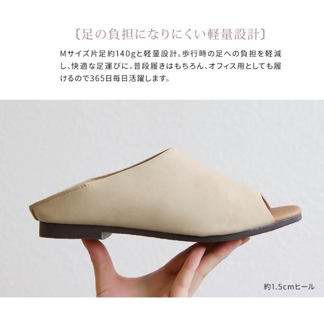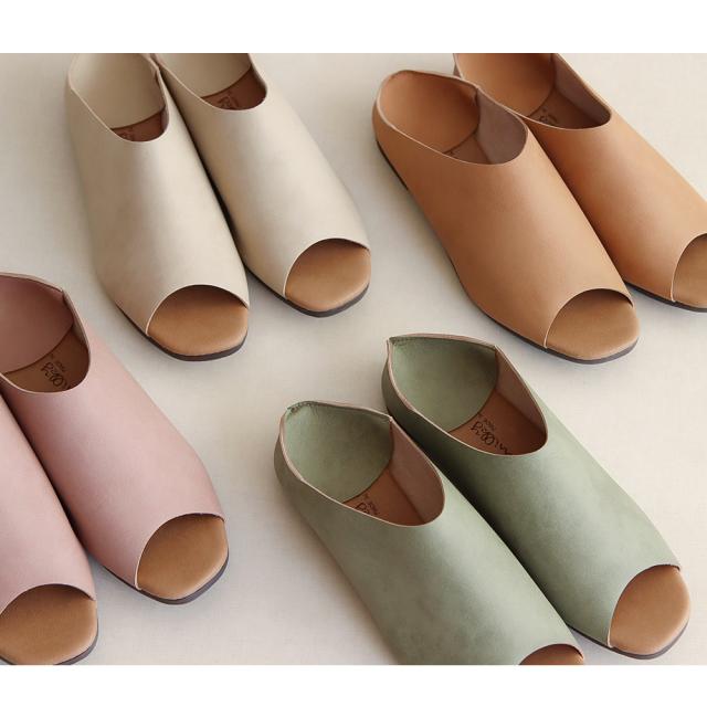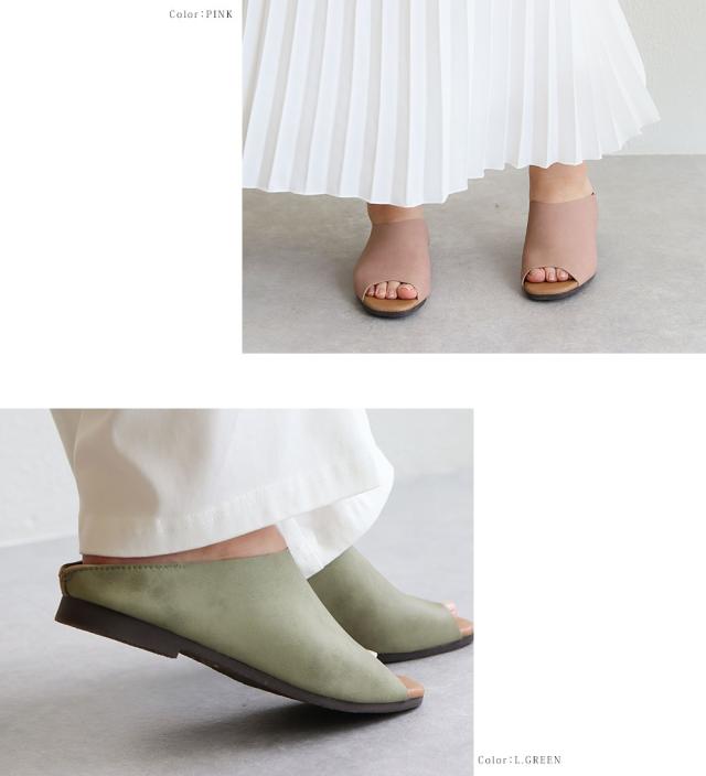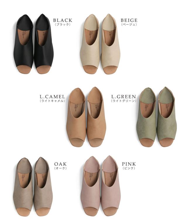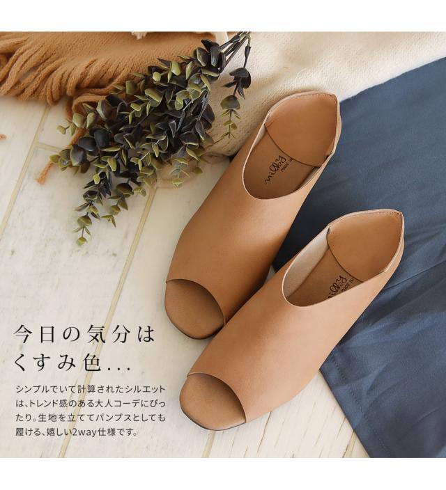 パンプス 痛くない 柔らかい ぺたんこ 歩きやすい サンダル 2way オープントゥ ローヒール 軽量 かかとが踏める スクエアトゥ レディース バブーシュ パンプス 前あき 前開き ぺたんこ靴 ブラック 黒 キャメル ピンク グリーン ベージュ ブラウン 23416 送料無料