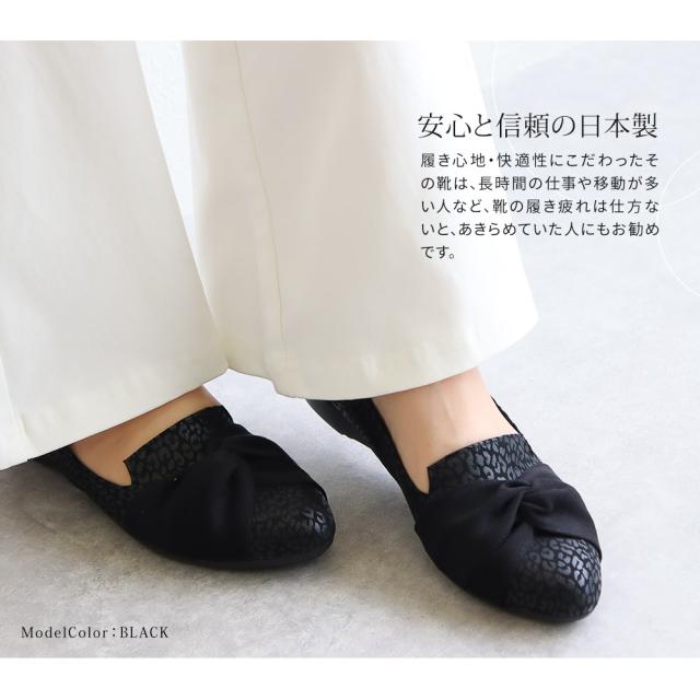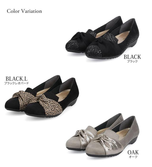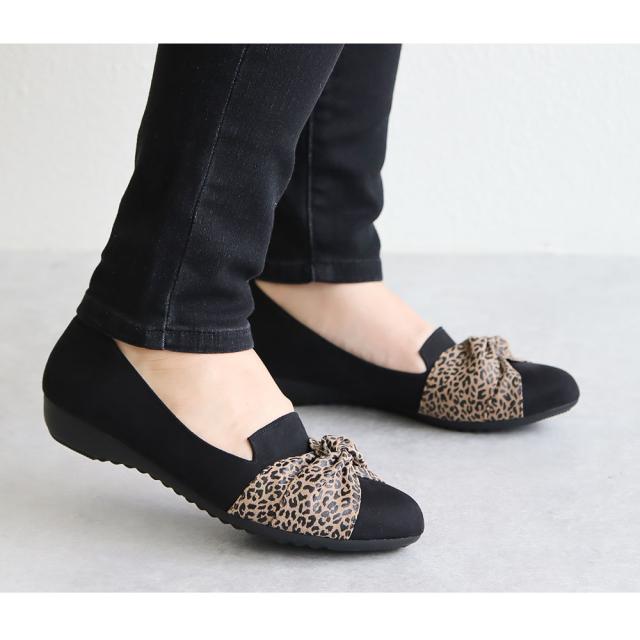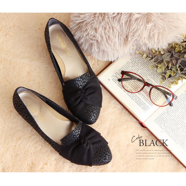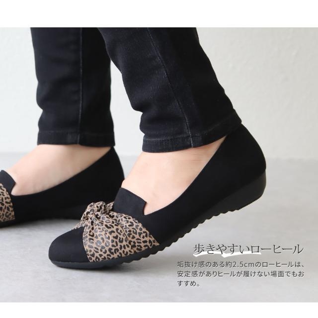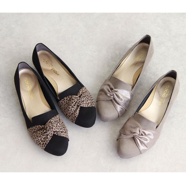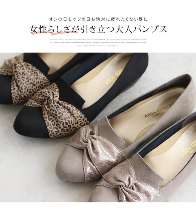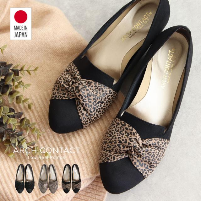 パンプス 痛くない ローヒール リボン 日本製 婦人靴 オペラシューズ レディース アーモンドトゥ レオパード ARCH CONTACT アーチコンタクト 靴 レディース 歩きやすい ヒョウ柄 豹柄 黒 ブラック 小さいサイズ 大きいサイズ 春 夏 秋 冬 39286 39287