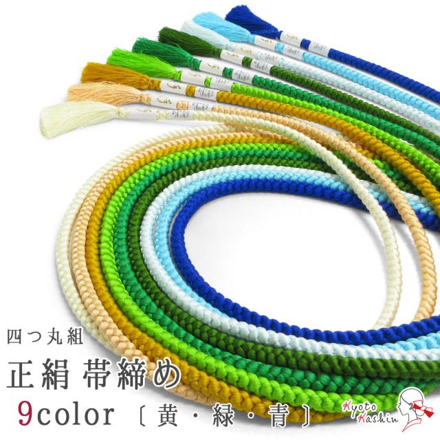 【2本までメール便送料無料】高級 正絹四つ丸組紐 帯締め 絹100% 伝統的工芸品 手組 巾9mm 並尺 約153cm 手組紐 9色 カラフル 黄 緑 青 水色 和装小物 着付け小物 レディース 女性 通年用 お洒落 カジュアル 着物 訪問着 付け下げ 色無地 小紋 紬 振袖 成人式 卒業式