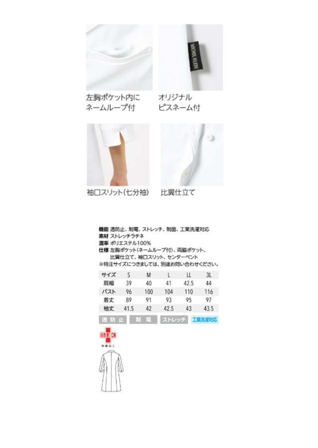 制服 医療 看護 美容 エステ クリニック MICHEL KLEIN ミッシェルクラン ユナイト ドクターコート(七分袖) 女性用 MK-0048