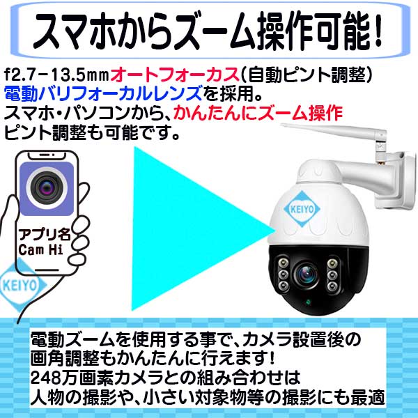 スマホ・パソコンから撮影画角の変更が行なえますので 撮影対象に応じて広角撮影・望遠撮影を切り替えて ご利用いただけます。