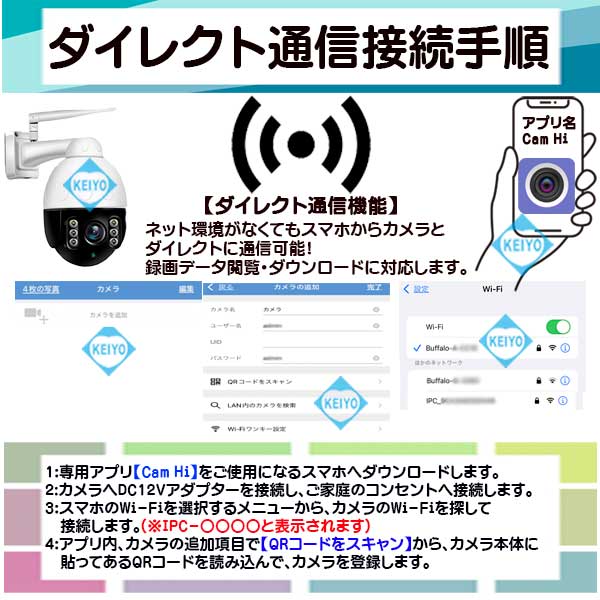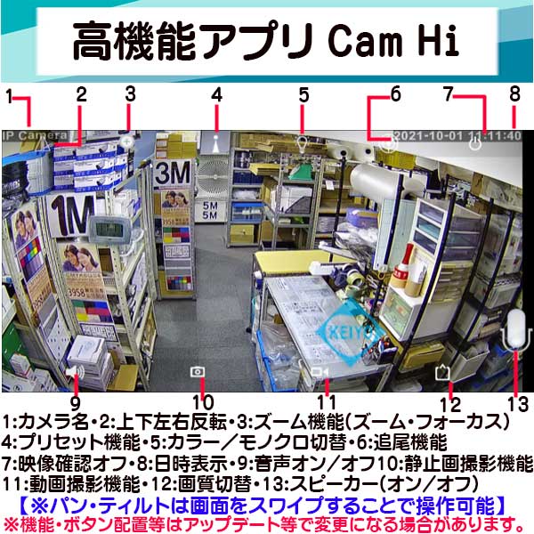 本製品は使いやすく、簡単に設定できるカメラアプリ 「CamHi」を使用します。