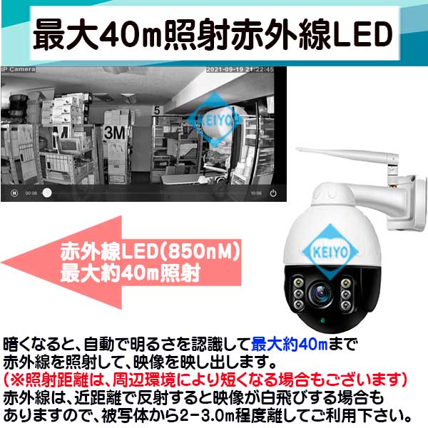 最大照射距離40Mに対応した赤外線LED4個を搭載しています。