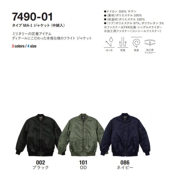 MA-1 ジャケット メンズ UnitedAthle ユナイテッドアスレ MA-1ジャケット 中綿入 ブルゾン アウター ミリタリー【7490-01】送料無料