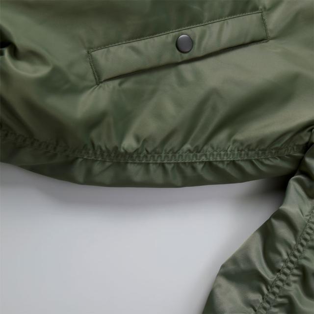より本格的な素材感を出すため、表地はナイロン仕様の中綿入り。