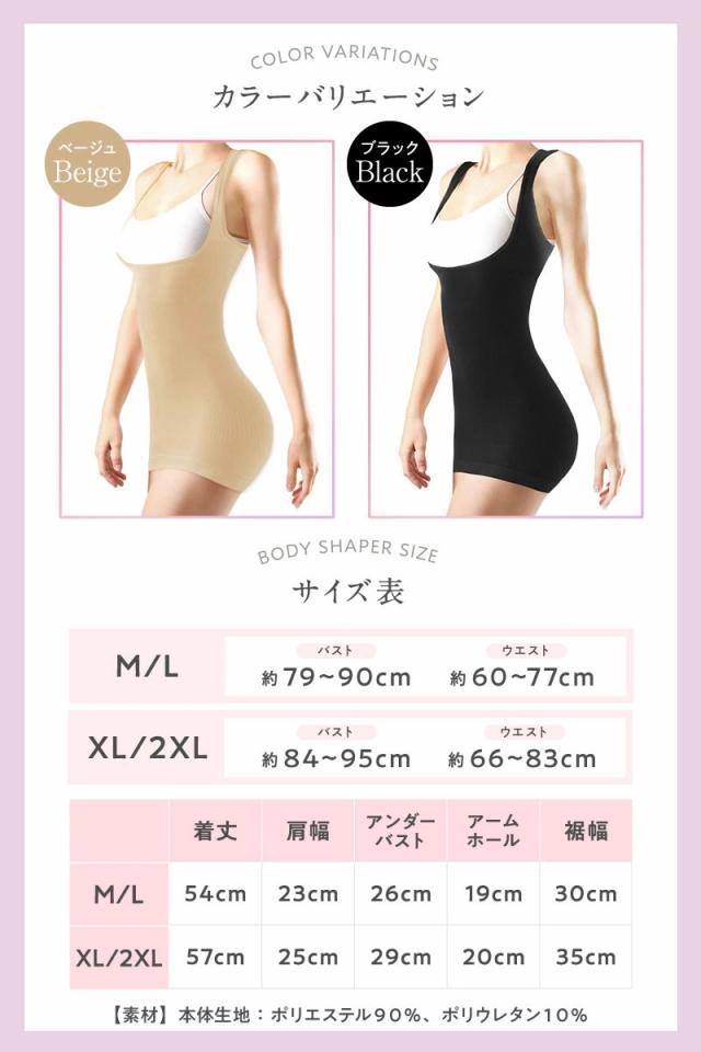XL/2XL:バスト約84〜95cm、ウエスト66〜83cm