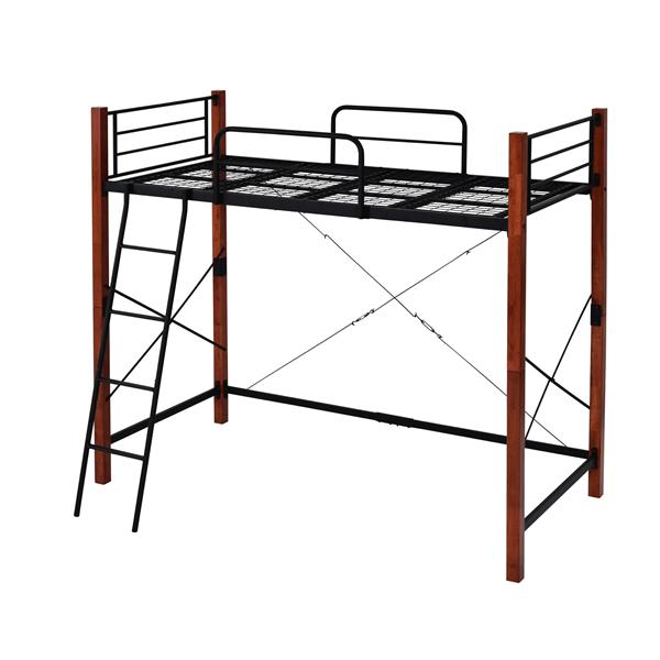 ■温かみのある天然木とクールなスチールのコントラストがおしゃれな、お部屋のスペースを有効活用できるロフトベッド。