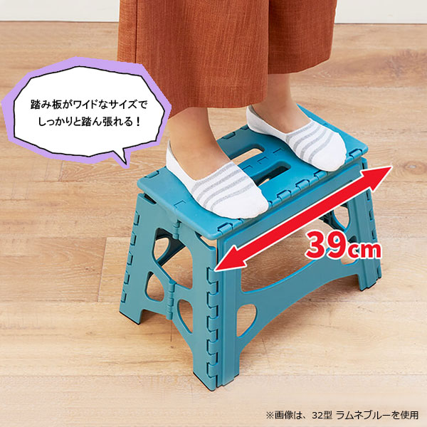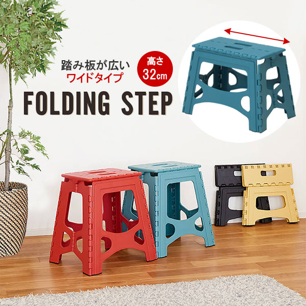 踏み台 フォールディングステップ 32型 ワイド ラムネブルー | ステップ 折りたたみ 軽量 1段 カラフル スツール 脚立 いす 椅子 幅広 広い ふみ台 子供 ステップ台