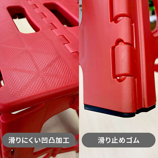 安全に配慮踏み台の表面に凸凹加工を施し、脚部には滑り止めゴム付きで、すべりにくくしています。