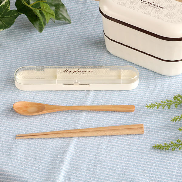| 材質 | お箸・スプーン:天然木 ケース本体・ケース蓋:スチロール樹脂 |