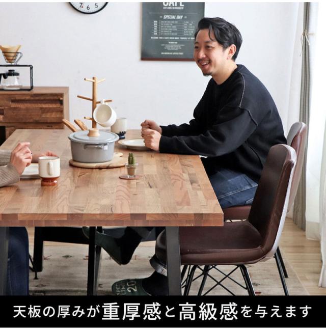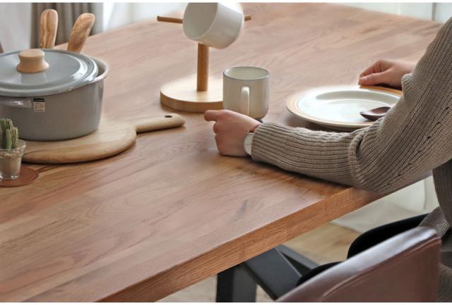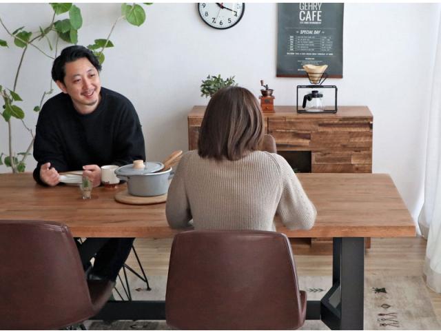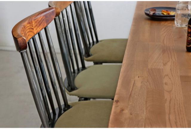 三種類の無垢材をミックスした集成材の天板が印象的なダイニングテーブル。
