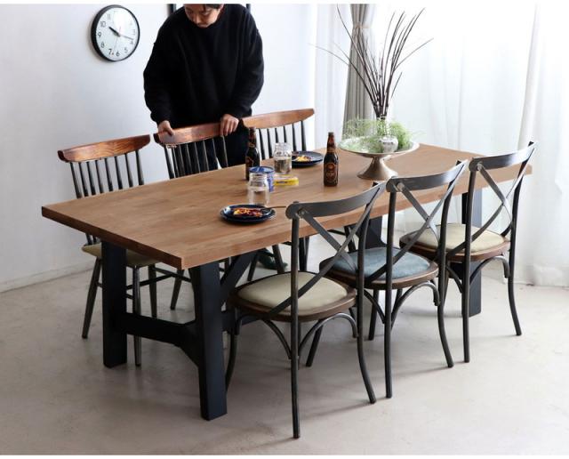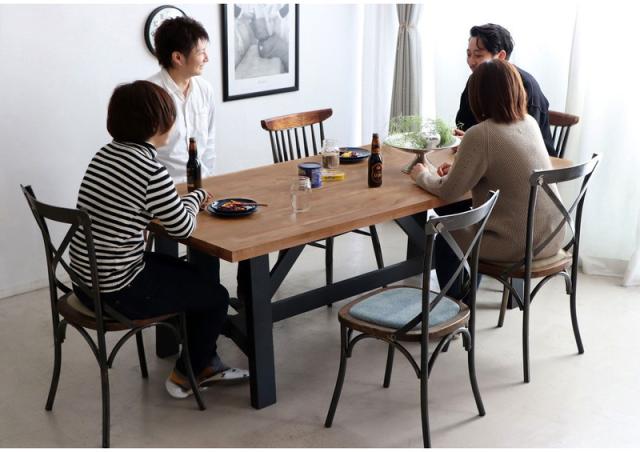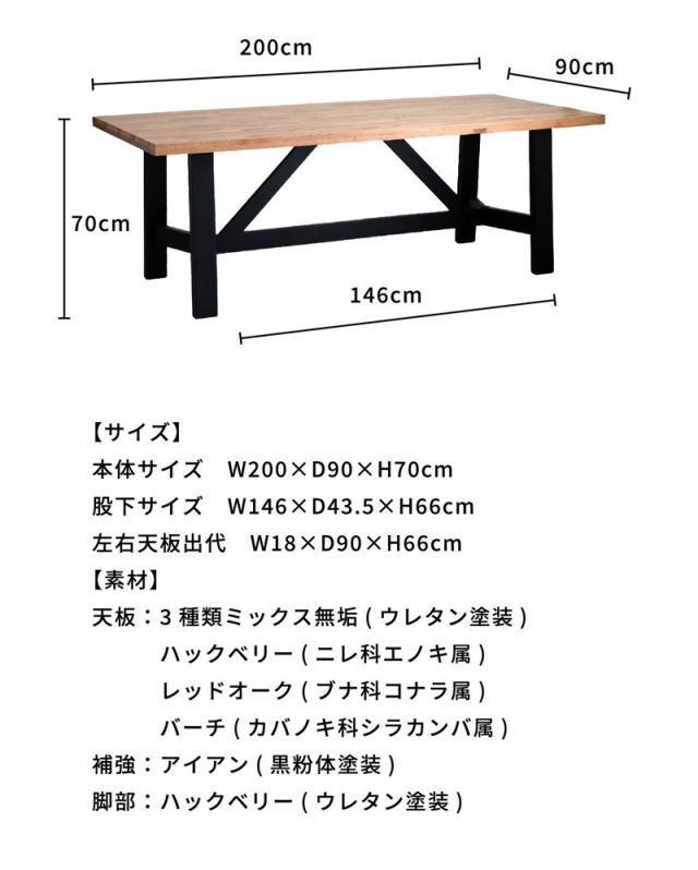 ダイニングテーブル 幅200cm ミックス無垢材 ウレタン塗装 アイアン脚 食卓テーブル 6~8人用 MABEX マベックス 大人数 カフェ風 無骨 天然木 ビンテージ風 おしゃれ(代引不可)【送料無料】