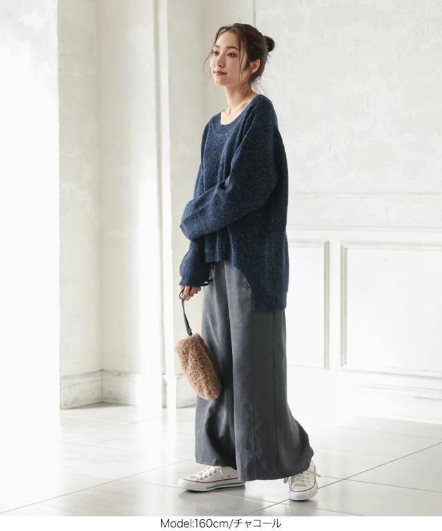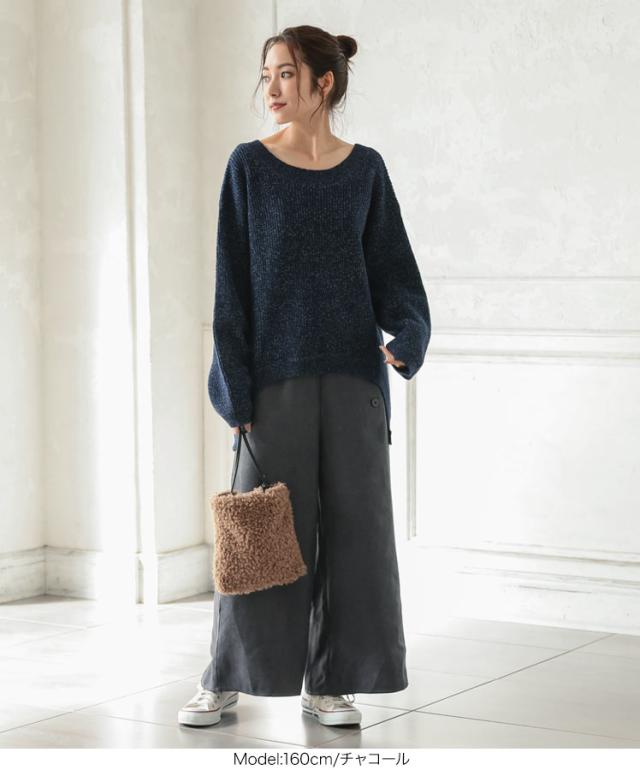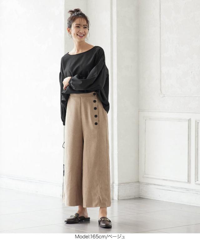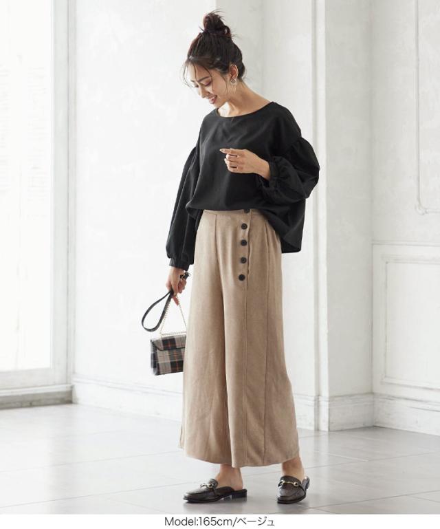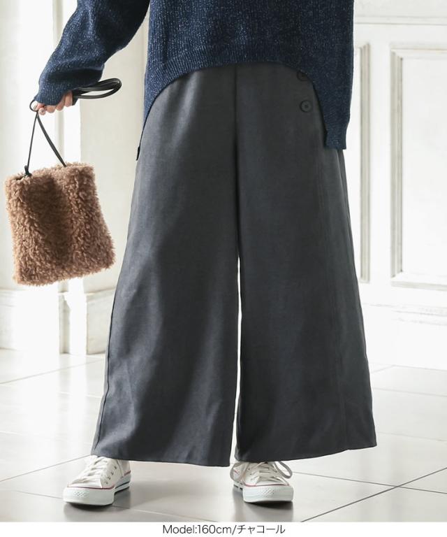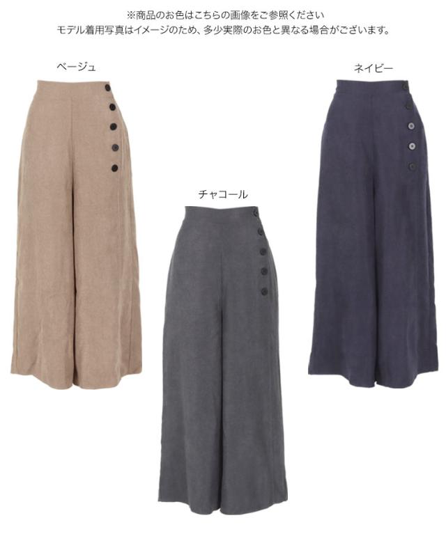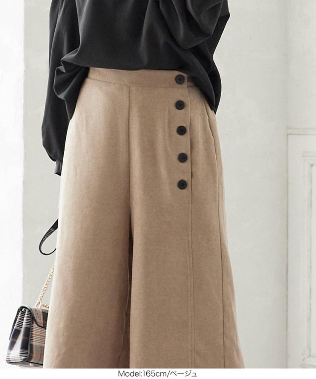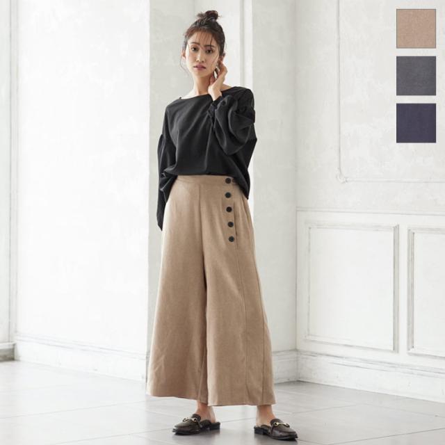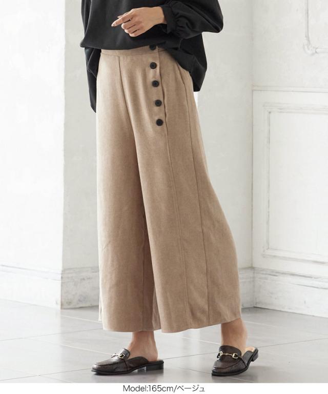 サイドボタン付きワイドパンツ M3466 入荷済 レディース ボトムス ロング丈 バックゴム ゆったり リラックス 体型カバー 大人 秋冬 きれいめ カジュアル ストレスフリー 大人可愛い 上品 大人カジュアル 無地 シンプル 40代 50代