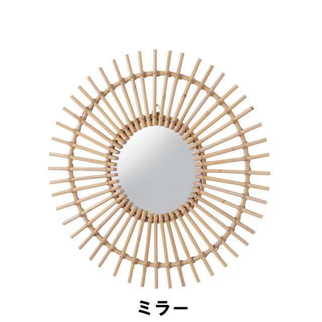 手編みならではの繊細なラタンミラーはやわらかくあたたかな印象。