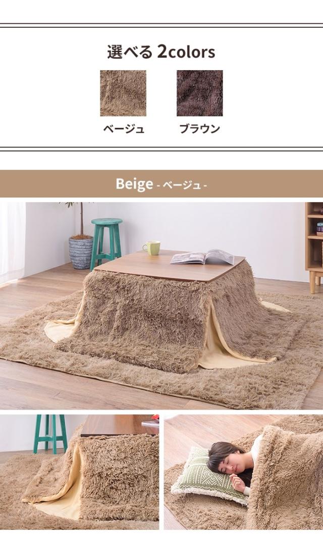 | どんなお部屋にも馴染む使いやすい無地のこたつ布団。 コーナー部分を切り替ることにより、従来のコタツふとんのようなもたつき感を軽減した省スペースタイプ。 表生地は長めの毛足でふんわり優しい触り心地、裏面は肌触りのよいフリース素材を使用おり、薄くてもしっかり暖めます。 薄型なので使わないシーズンは折りたたんでもかさ張らずコンパクトに収納できます。 |