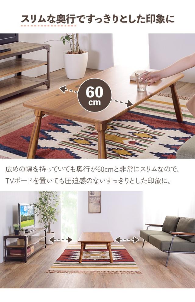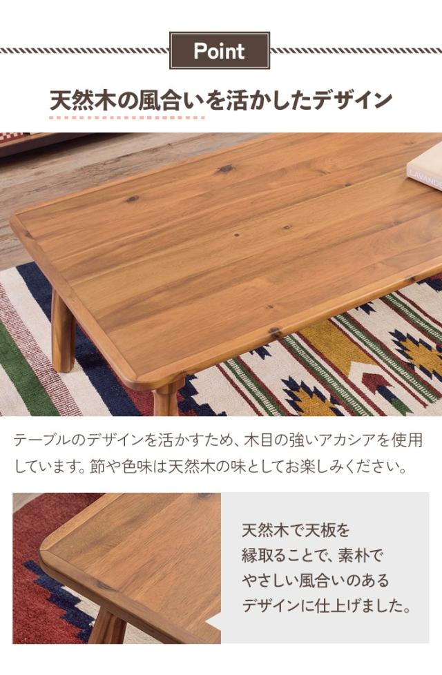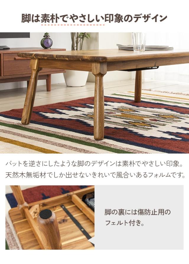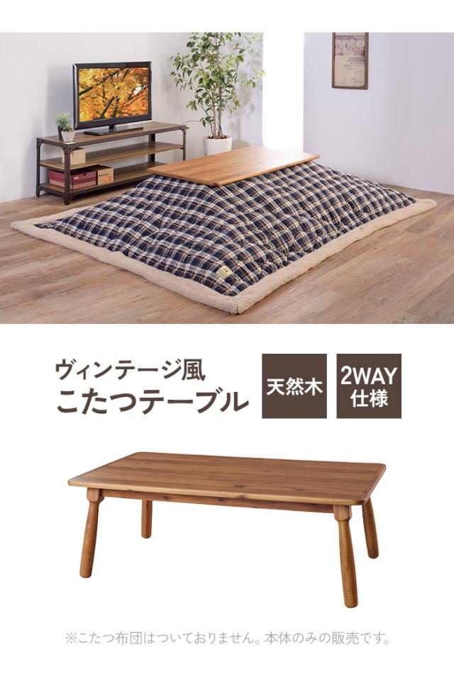 深みのあるアカシア材を使用したヴィンテージテイストのこたつテーブル。