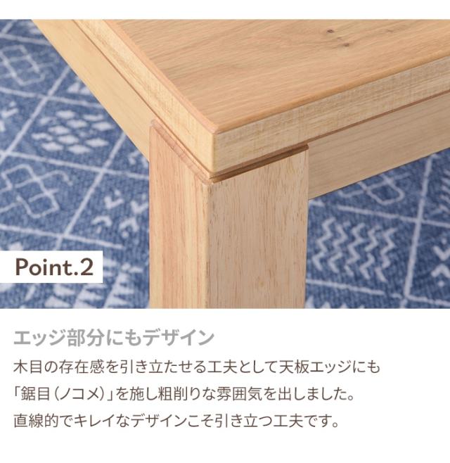 天然木の表情を楽しめるようあえて節を活かした厚みのある突板を使用し、天然木のやさしい凹凸や風合いを楽しめるこたつテーブルです。