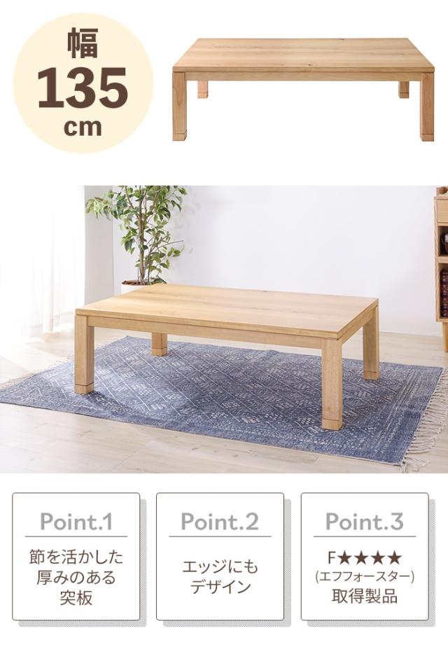 コタツテーブル 長方形 幅135cm オールシーズン 炬燵 コタツ リビングテーブル 日本製 石英管ヒーター 暖房器具 電気ごたつ リビング 和室 座卓 モダン 天然木 オーク おしゃれ