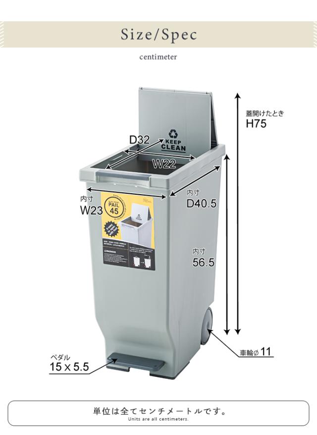 キーワード: スライドペダルペール 45L 幅26 奥行44.5 高さ58cm インテリア インテリア小物 置物 ゴミ箱
