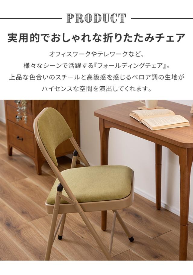 キーワード: 椅子 チェア フォールディングチェア 折りたたみ式 スチール ベロア調 軽量設計 コンパクト おしゃれ かわいい シンプル 完成品 折りたたみ椅子 オフィスチェア デスクチェア パイプチェア フォールディング クッション材 シンプル 北欧風 隙間収納 高級感 おしゃれ リビング ダイニング オフィス