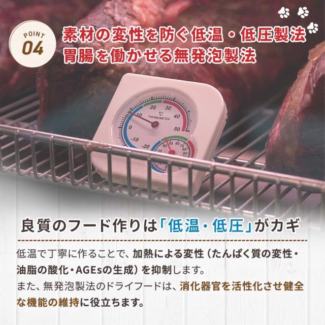 また、無発泡製法のドライフードは、消化器官を活性化させ健全な機能の維持に役立ちます。