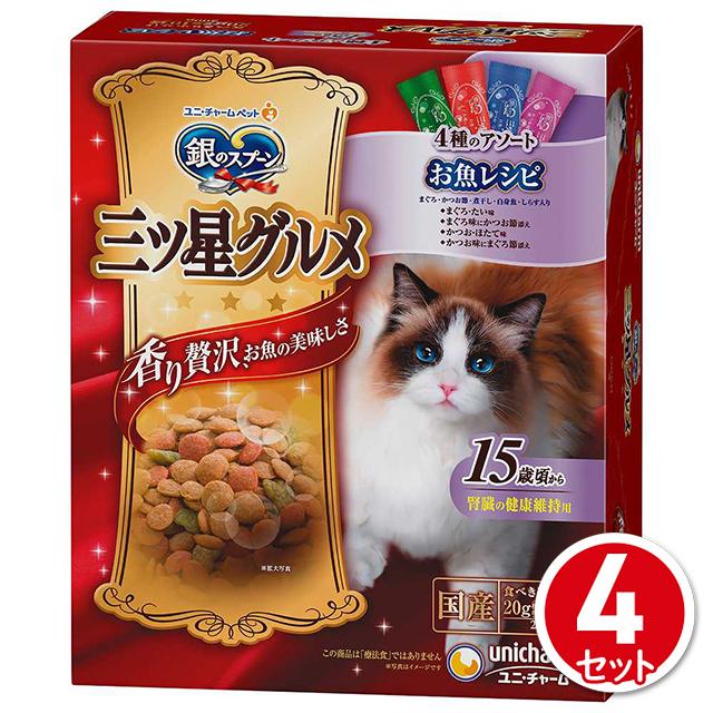 銀のスプーン 三ツ星グルメ 15歳頃から 4種のアソート お魚レシピ 200g×4箱セット ユニ・チャームペット キャットフード 猫 まとめ買い