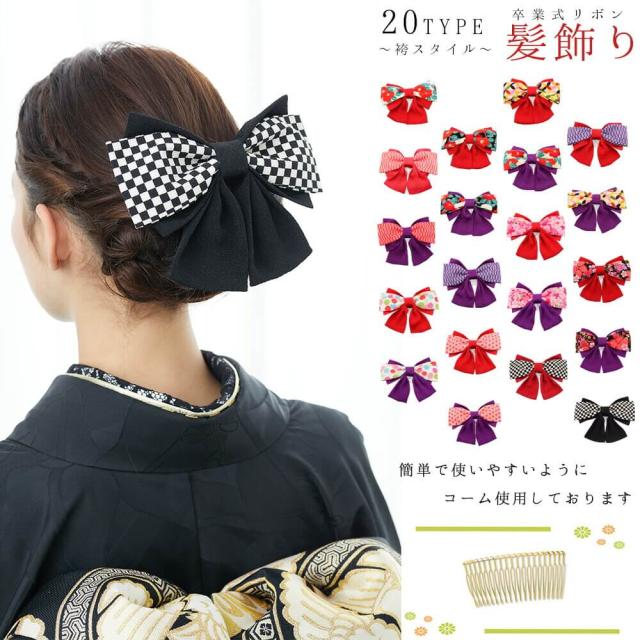 髪飾り リボン 袴 卒業式 成人式 振袖 赤 紫 矢絣 かんざし 簪 髪かざり 和柄 ちりめん 古典 浴衣 夏祭り 花火大会