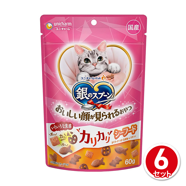 キャットフード 銀のスプーン おいしい顔が見られるおやつ カリカリ シーフード 60g 6個セット ユニ・チャームペット 猫 まとめ買い
