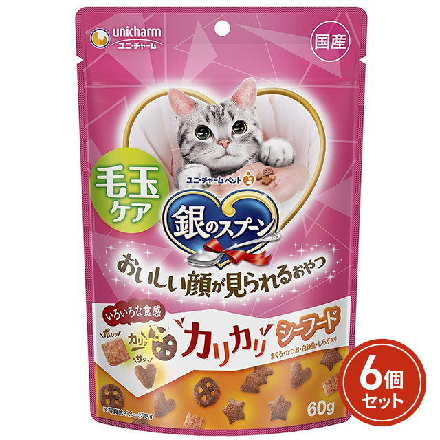キャットフード 銀のスプーン おいしい顔が見られるおやつ 毛玉ケア カリカリ シーフード 60g×6個セット ユニ・チャームペット 猫 まとめ買い