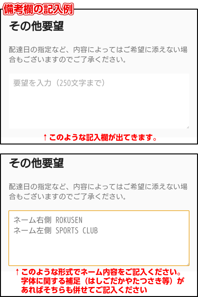 5、備考欄にネーム内容をご記入ください。