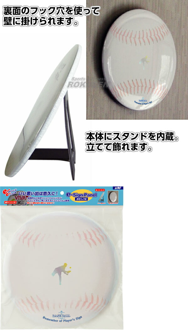 そのまま立てられるスタンド内蔵のディスク型サインパネル(野球)です。裏面のフック穴を使って壁に掛けることもできます。