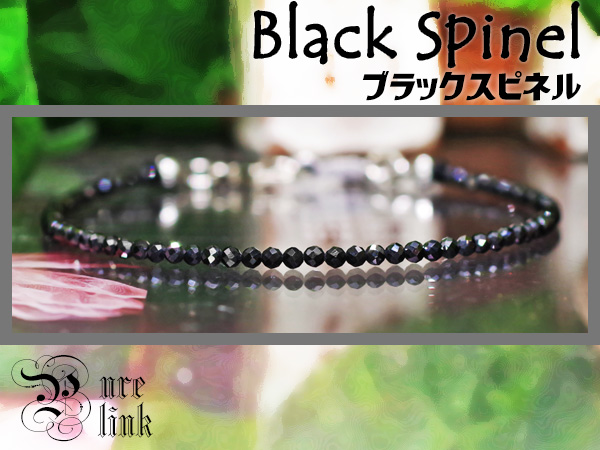 艶やかな黒い宝石★『ブラックスピネル』輝くカット極細ブレスレット