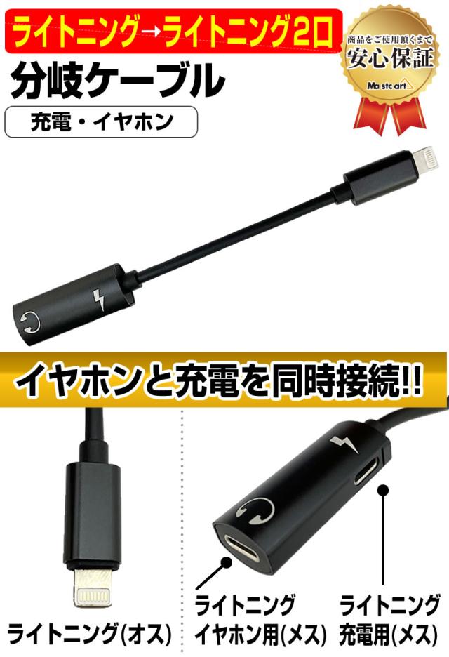 ライトニング ケーブル 変換 ケーブル Lightning 分岐 充電 通話 イヤホン iPhone 7 8 X XR XS 11 12 同時 二股 アダプタ コネクタ オス メス 変更 切替 パソコン タブレット