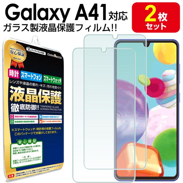 強化ガラス 2枚セット Galaxy A41 ( SC-41A SCV48 ) ガラスフィルム 保護フィルム GalaxyA41 a41 A 41 galaxy ギャラクシーa41 ギャラクシー ガラス 液晶 保護 フィルム シート 画面 傷 キズ カバー