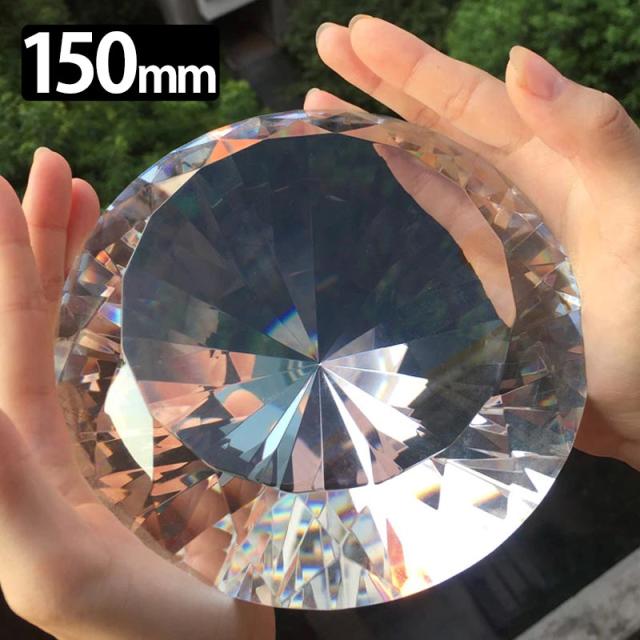 150mm クリスタルダイヤモンドカットガラスディスプレイ(クリア/透明) 1個販売 ディスプレイ ショーケース イミテーション 飾り ショップ 雑貨 インテリア 偽物 ガラス製 ダイアモンド レプリカ 大きい 面白い 展示用 宝石 裸石風 ルース風 プレゼント 撮影用 15cm