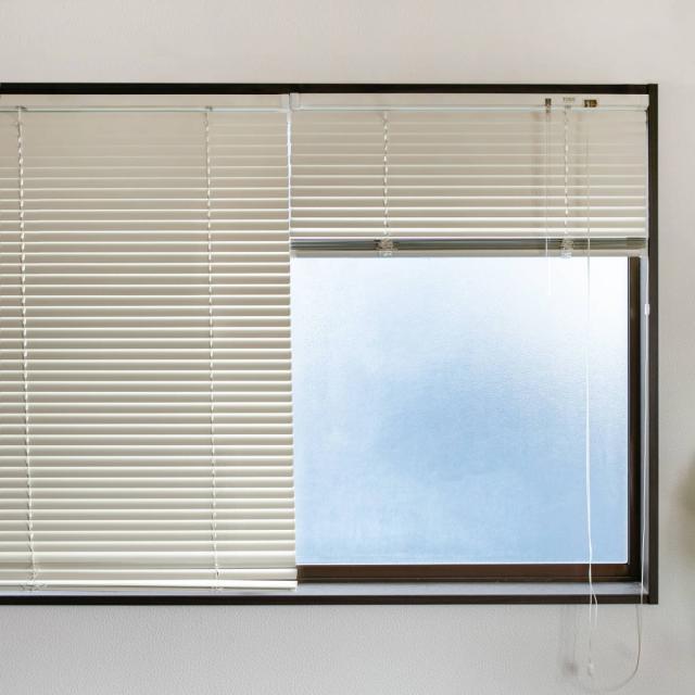 ブラインドはスラット(羽)の角度によって日差しを遮りながら風を通したり、外からの視線をコントロールすることができます。スラットの向きや角度によって光の取り入れ方を変えられ、カーテンにはできない細かな調節が可能です。プライバシーを守りつつ光をコントロールできるのが、ブラインドの最大のメリットです。