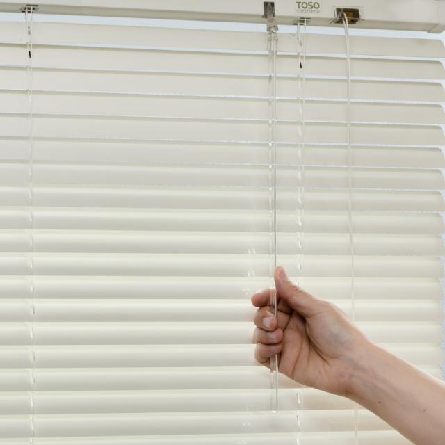 操作棒を左右に回転させるだけでスラットの角度が調節でき、外から光を取り入れます。