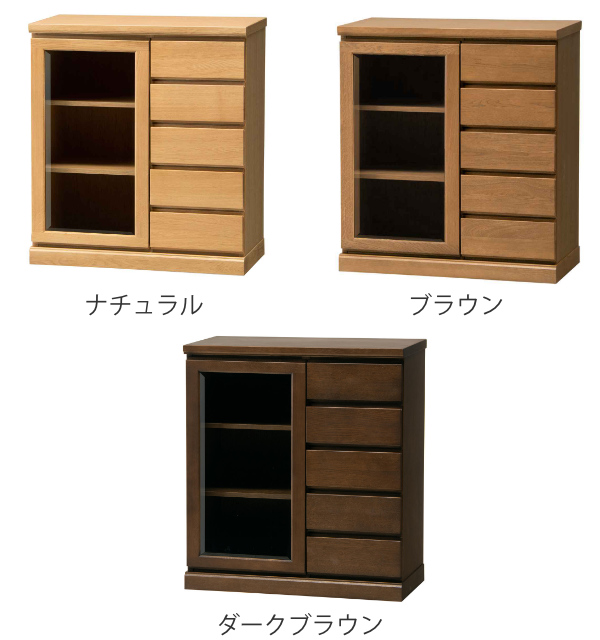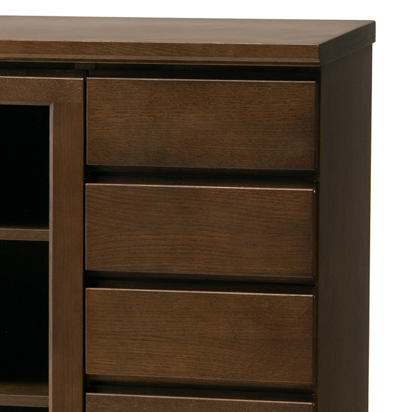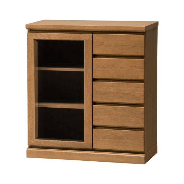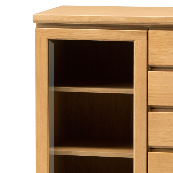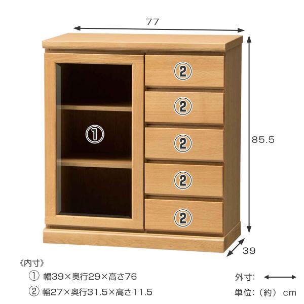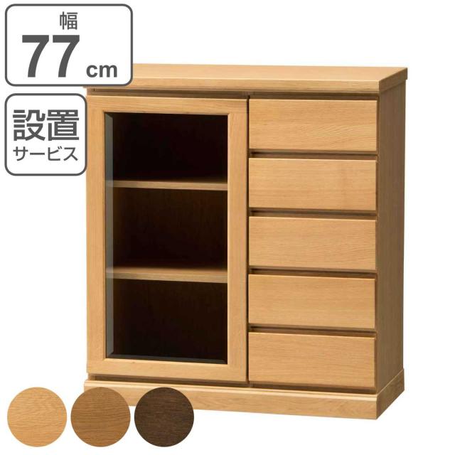 サイドボード 片開き ガラス扉 引出し5段 天然木 FIGARO 幅77cm ( 開梱設置 収納棚 窓下 キッチン キッチンカウンター 木製 日本製 完成品 収納 キッチン収納 引出し収納 リビング収納 オーク 国産 おしゃれ )